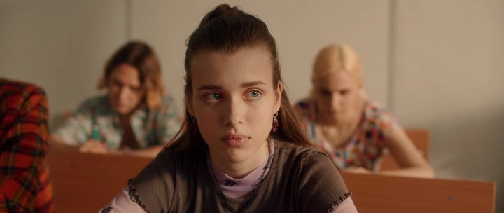 Начать хочу с общей атмосферы. Не знаю, как всем остальным, а меня удивил неоново- гипнотический вайб. Всё такое яркое, красочное. Возможно, немного более шумное и рваное по началу, чем хотелось бы. Но это с большой вероятностью было создано так, чтобы мы внешне могли увидеть внутренний мир главной героини и то, как она воспринимает сложившуюся вокруг неё реальность. По началу, конечно, всё происходящее выглядит сумбурно, но потом и сам фильм становится спокойнее, и мы уже становимся более вовлечёнными в жизненные перипетии маленькой Жени. За данный визуал огромное спасибо оператору Максиму Чиркову и художнику по костюмам Евгении Соболевой. Отдельное внимание хочу уделить нарядам – все подобранные образы просто вау, а от последнего выхода нашей девочки я почти умерла, так получилось красиво и сочно.