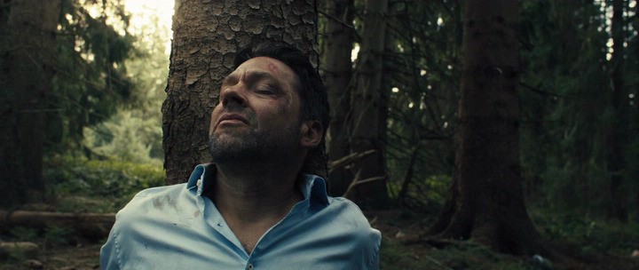 Клаустрофобических историй про плен и попытки освободиться из лап неизвестного похитителя снято немало - включая как дешёвые триллеры-однодневки, так и мировую классику вроде 'Олдбоя'. 'Кара' формально следует традициям такого кино - но нарушает практически все правила. Обычно в такие ловушки на экране попадают женщины или подростки - очевидно, что у зрителя будет к ним больше эмпатии. Часто пленников несколько - это даёт сценаристам возможности строить диалоги между ними, нагнетать саспенс, а то и подозревать кого-то из них в работе на маньяка. Жертвы в таком кино проходят через серию испытаний-ловушек, чтобы сполна развлечь скучающего зрителя. И происходит это в каком-нибудь мрачном подвале. В 'Каре' ничего такого нет. Жертва - полноватый обычный мужик, один, никаких квестов ему не предлагают, вокруг лес. Значительную часть фильма он просто сидит, привязанный к дереву, пытаясь дотянуться хотя бы до папоротника в каплях росы, наблюдая равнодушно ползущих мимо улиток, вслушиваясь в шорохи леса и пытаясь отделить фантазии от реальности. А фантазий у него полно. То нагрянут экоактивисты, против которых выступит лесозаготовительная техника. То мимо начнут бродить охотники-одиночки или женщины со скандинавскими палками. Кто из них реален, а кто нет? И главное - в чем его вина?