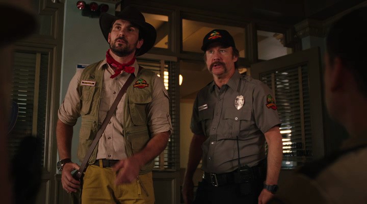 Не вижу ничего плохогоВступать на поле пародийных хорроров и чёрных комедий — в наше время весьма рисковый шаг. Попытки никого не обидеть и не оскорбить порой доходят до абсурда, а вся канва остаётся сшитой белыми нитями из самых разрозненных отсылок, цель которых, скорее не рассмешить, а просто быть узнанными. В основе сюжета «Невидимого хищника» странный коктейль из «Парка юрского периода» и «Человека-невидимки» (что, кстати, потешно обыгрывается в одном из диалогов), приправленного буффонадой и шутками, часто, ниже пояса. Даже постер а-ля Индиана Джонс кричит о том, что вас ждёт откровенная Б-шка для сомнительных гурманов.