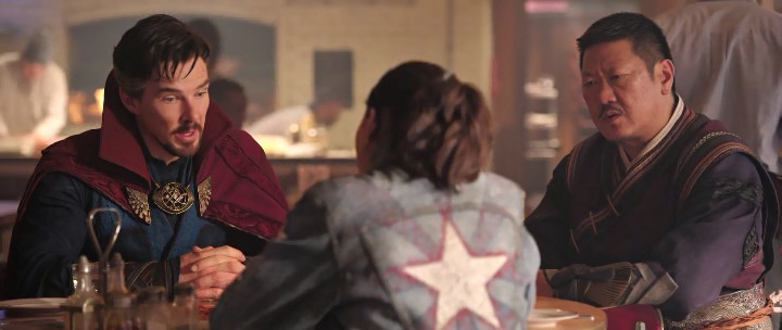 Отдельной строкой стоит отметить повторное наступание на грабли, что 'наш герой' гораздо лучше своих версий. И как в случае с Людьми-пауками Паук Холланда прозрачно выглядел более правильной и лучшей версией (мы говорим про сюжетные мотивы вроде того, что Паук Холланда злодеев не убивает, в отличие от этих... а не про фанатские предпочтения), так и тут наш Доктор Стрэндж, но уже более прямо, показывается более правильным. И в словах Ванды, которые можно услышать ещё в трейлере, звенит весь этот лейтмотив - 'ты нарушаешь правила, и тебя восхваляют, я нарушаю -- и меня клеймят'. Потому что наш Доктор Стрэндж многое повторит и за своими альтернативными версиями, и даже за Вандой, но под совершенно другим оценочным углом... но создатели немного это выровняют перед самыми титрами.